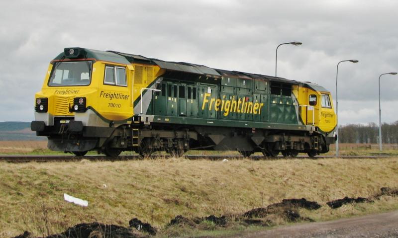70005 started use on freight trains on 20 April 2010, with 0858 6G05 Ravenstruther - Longannet (coal), then the 4C07 return empties as far as Mossend. 70005 also worked to Longannet on April 22nd, 27th and 29th. On the 2nd of May it ran light engine to Carlisle.Two other Class 70s visited Longannet Power Station during 2010.