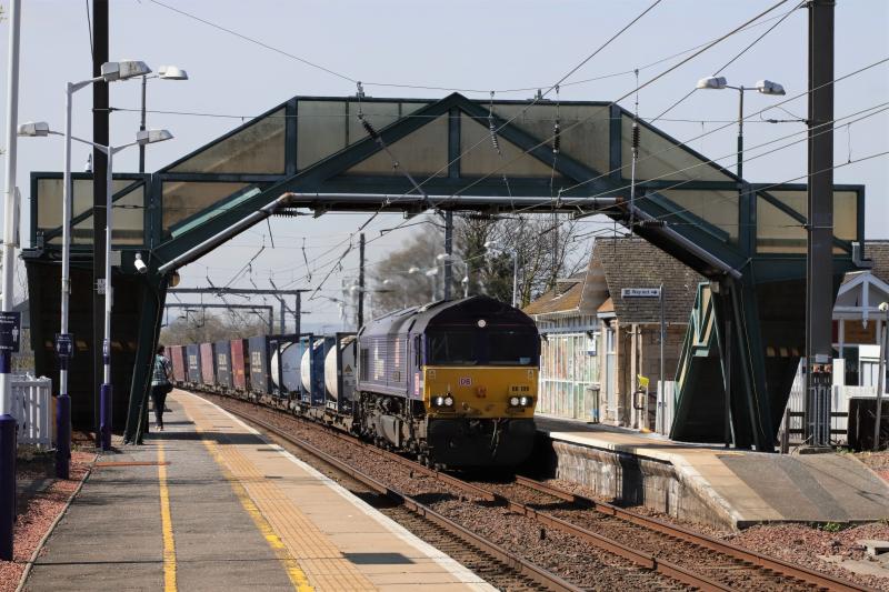 - 66109 "Teesport Express" on 4E96 08.24 Mossend Euroterminal to Tees Dock at Prestonpans on 16/04/2021