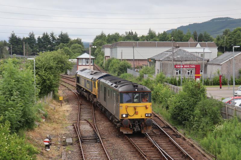 - Yesterday evening, 73970 + 66738 heading off to FW station sidings to hook up to the CS Sleeper carriages and then shunt them into Platform 1. The odd couple had just moved out of the former Oil Depot siding on the left where they rest during the day.