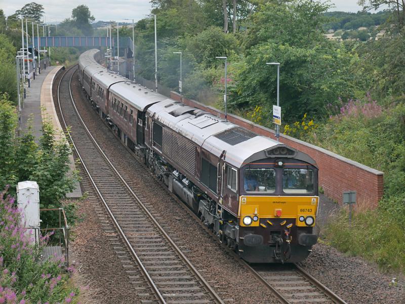 - GBRf 66743 hauls the 'Royal Scotsman' from Edinburgh to Keith through Dalgety Bay on 24 July.