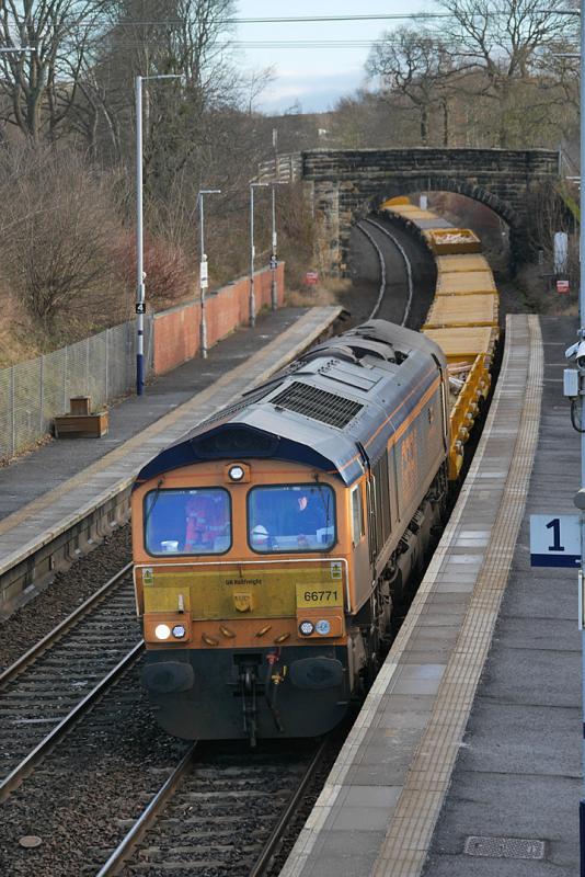 - GBRf 66771 runs through Dalgety Bay with 6K09 from Cowdenbeath to Millerhill.