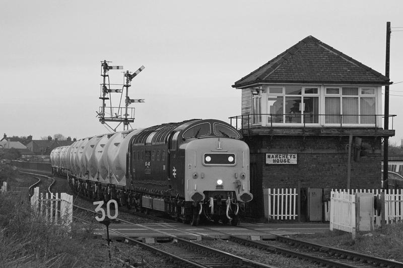 - In fading light, 55022 works 6N71 20:20 Lynemouth to North Blyth empty Alumina tanks over the well photographed and quaint crossing at Marcheys House, running around 30mins early. In reality, the tanks should have run five hours earlier but didn't, leading to a frustrating day for those out! Monday 18th April 2011.