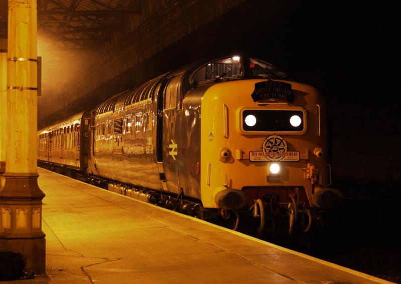 - 55022 at the head of the Far North Explorer, Perth, in the early hours of Saturday 18th June.